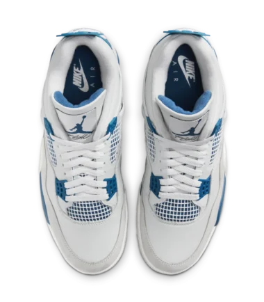Regresa a lo clásico. Los amados AJ4 vuelven con cuero blanco cáscara de huevo premium, nobuk gris neutro y toques llamativos de azul industrial, lo que crea una estética general impecable.