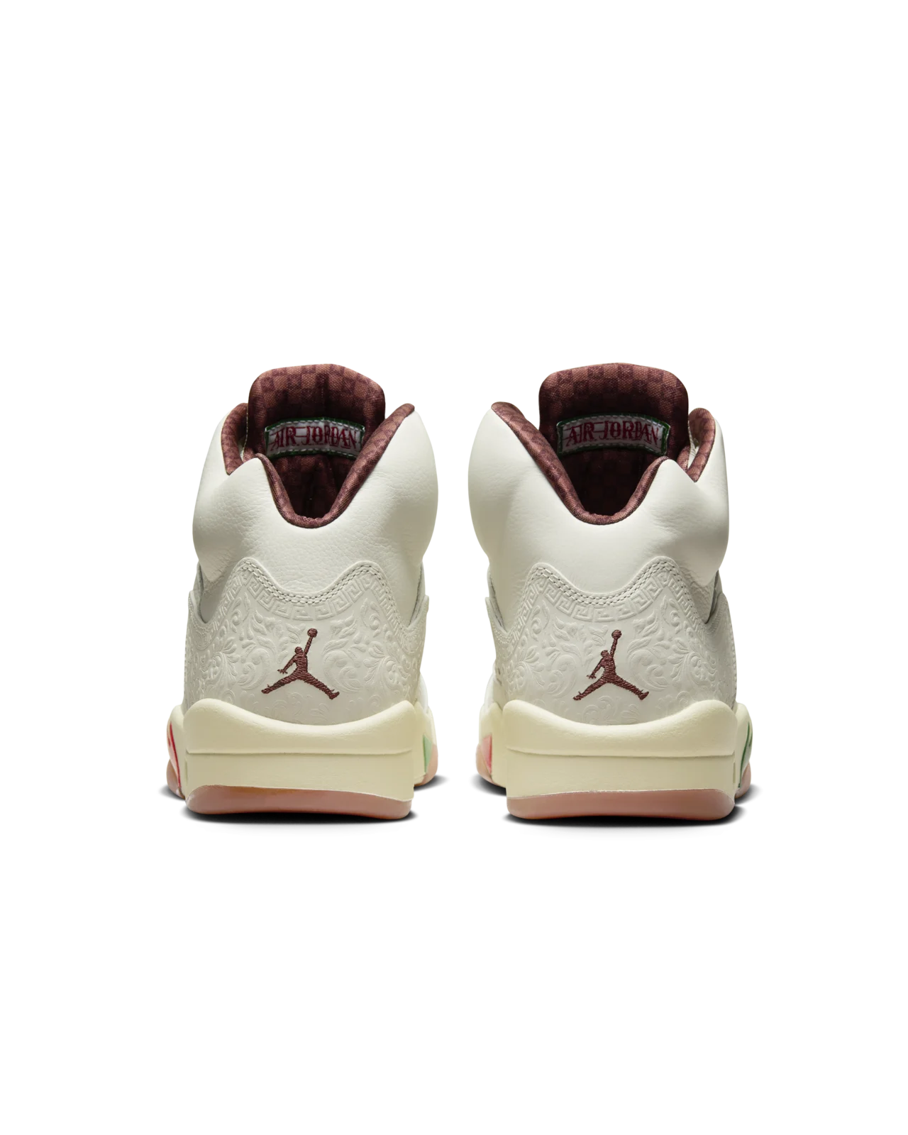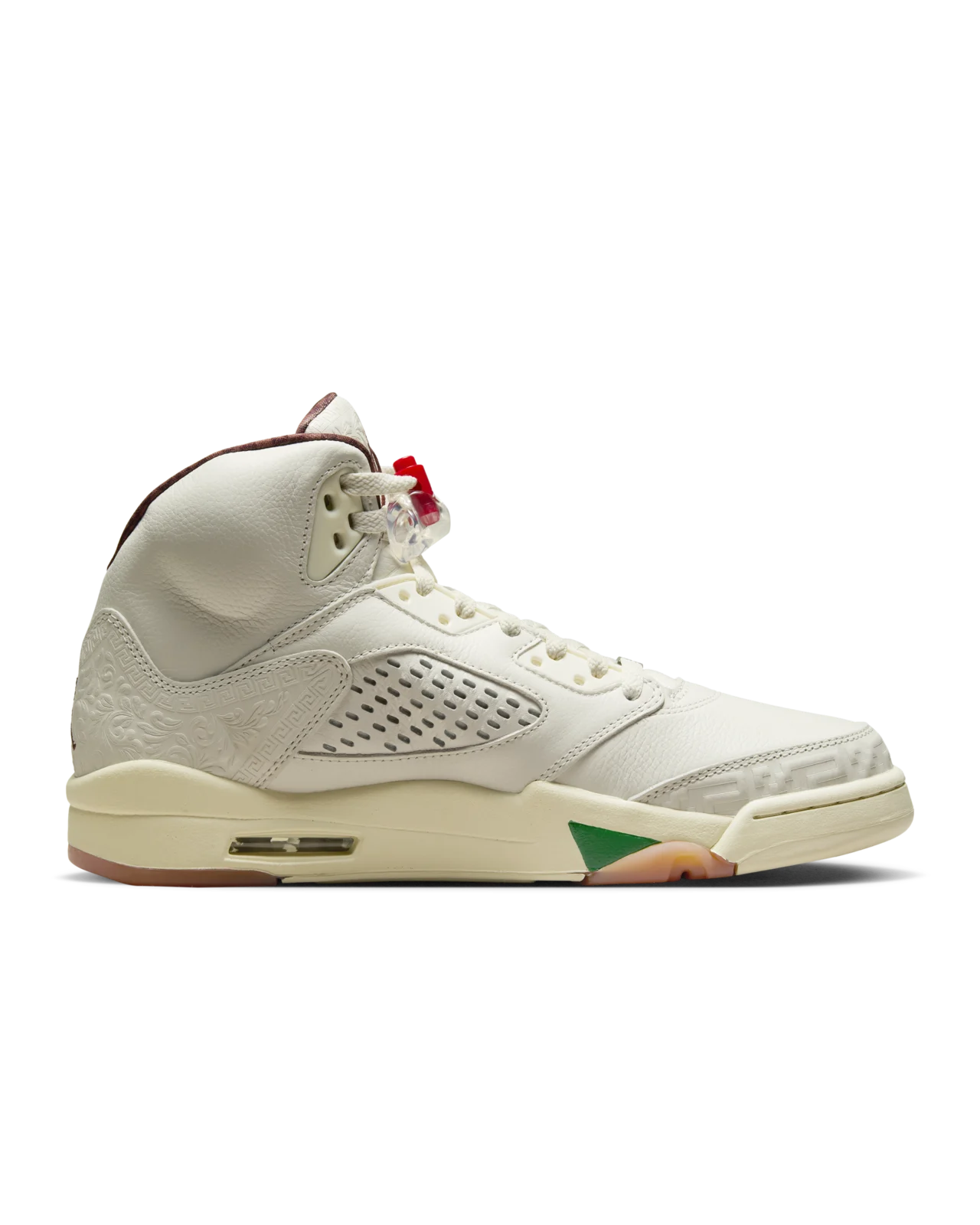 Los Air Jordan 5 fueron los primeros en la línea Jordan en incorporar una lengüeta reflectante hecha de material 3M, lo que los hacía visibles bajo ciertas luces y les añadía un toque futurista.