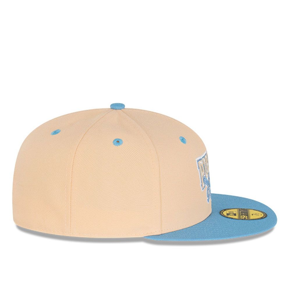 Esta gorra plana New Era 59FIFTY de Los Angeles Dodgers de la colección MLB Script Sided presenta un diseño con el nombre y logotipo de los Dodgers bordados en los paneles frontales, un parche conmemorativo del lado derecho, el MLB Batterman en la parte de atrás y el flag de New Era bordado del lado izquierdo.